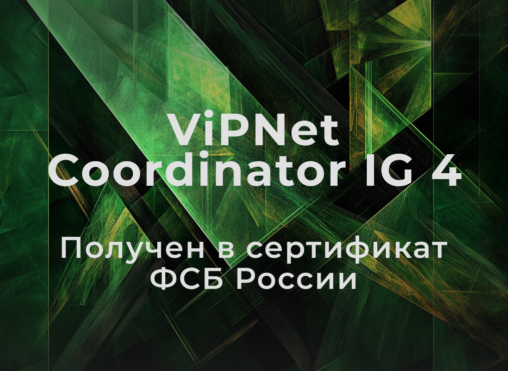 Сертификат ФСБ России №СФ/124-5279 от 02.10.2025 удостоверяет, что программно-аппаратный комплекс (ПАК) ViPNet Coordinator IG 4 на аппаратных платформах IG10 I1, IG10 I2, IG100 I1, IG100 I4, IG100 I5 со специальным программным обеспечением 4.5.1 с учетом извещения об изменении № 4 соответствует требованиям к средствам криптографической защиты информации класса КС3.
