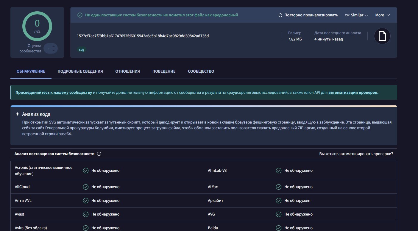 Проблема формата заключается в выявлении вредоносной логики. На примере представлен вредоносный SVG-файл, который остался незамеченным на VirusTotal и обошел все антивирусные программы.