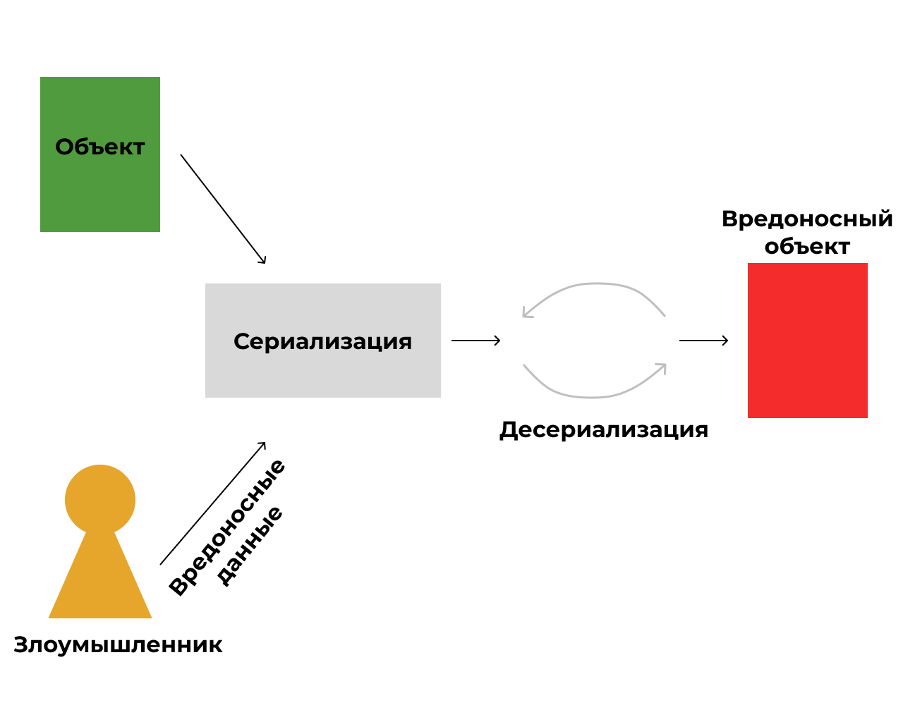 На рис. 1 изображен процесс изменения данных объекта, который считался защищенным от несанкционированных модификаций. Это позволяет запускать непредусмотренные операции или вызывать непредсказуемые функции внутри системы.