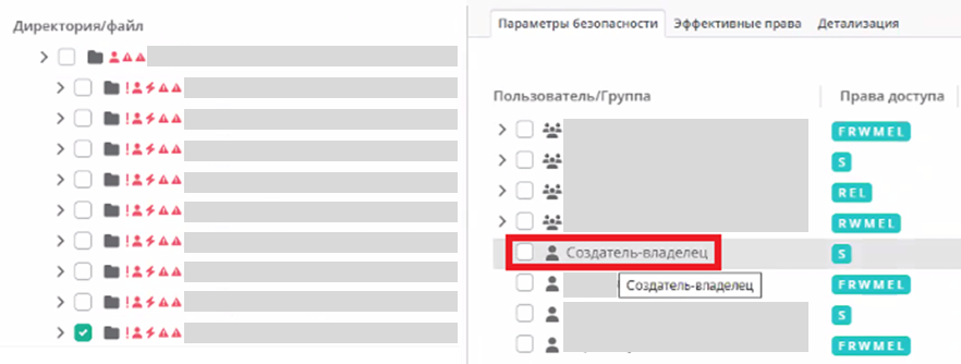 Рекомендуется удалить сущность «Создатель-владелец», добавить сущность «Права владельца» с привилегиями уровня модификации данных (RWMEL) и настроить политики безопасности с уведомлением о появлении новых случаев создателей-владельцев.